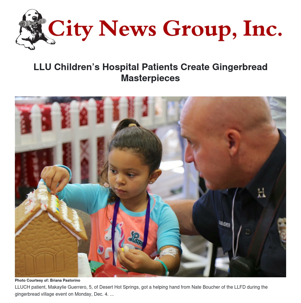 Patients at Loma Linda University Children’s Hospital (LLUCH) got into the holiday spirit this week by creating a gingerbread village display in the hospital lobby.