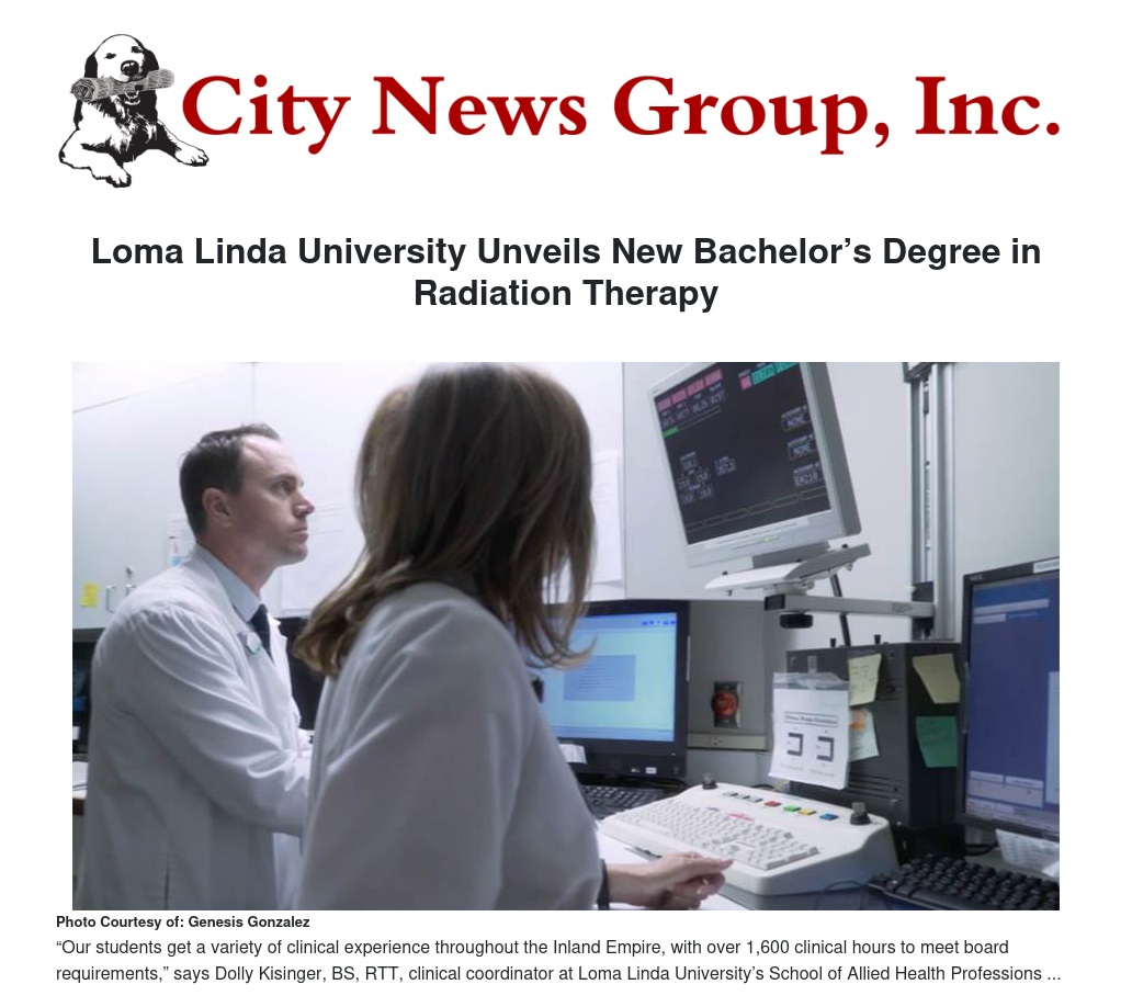 “Our students get a variety of clinical experience throughout the Inland Empire, with over 1,600 clinical hours to meet board requirements,” says Dolly Kisinger, BS, RTT, clinical coordinator at Loma Linda University’s School of Allied Health Professions.