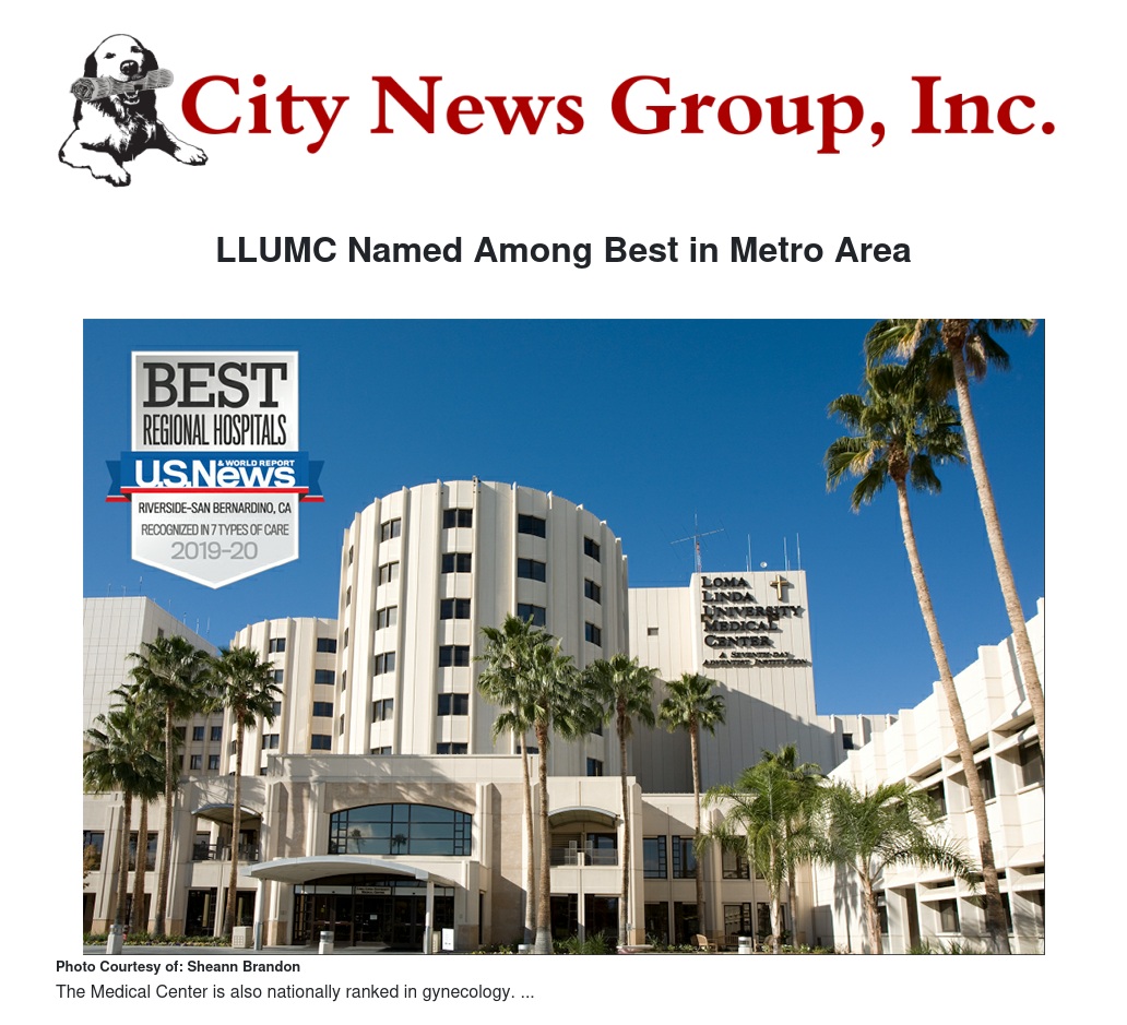 Loma Linda University Medical Center has been ranked by U.S. News & World Report as the No. 2 hospital in the Riverside and San Bernardino metro area for 2019-20.