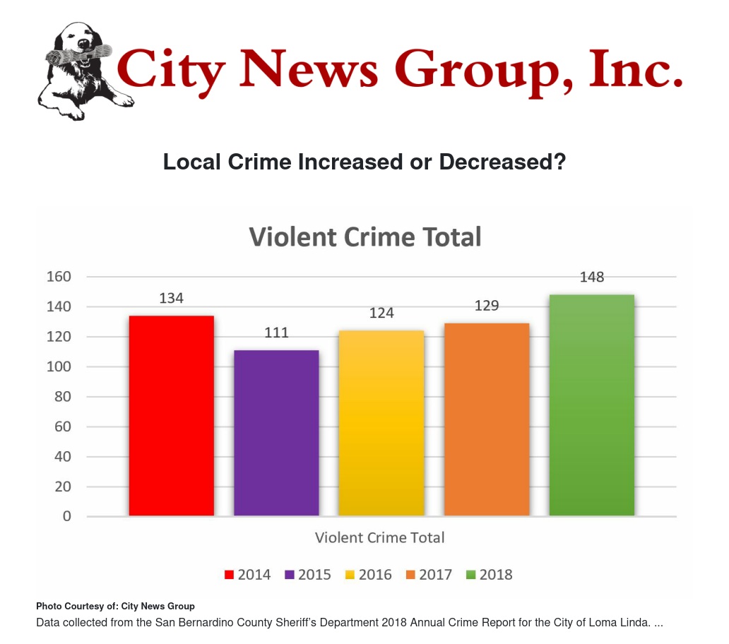 In the last five years, the City of Loma Linda has experienced an overall 10 percent increase in violent crime, according to the 2018 Annual Crime Report.