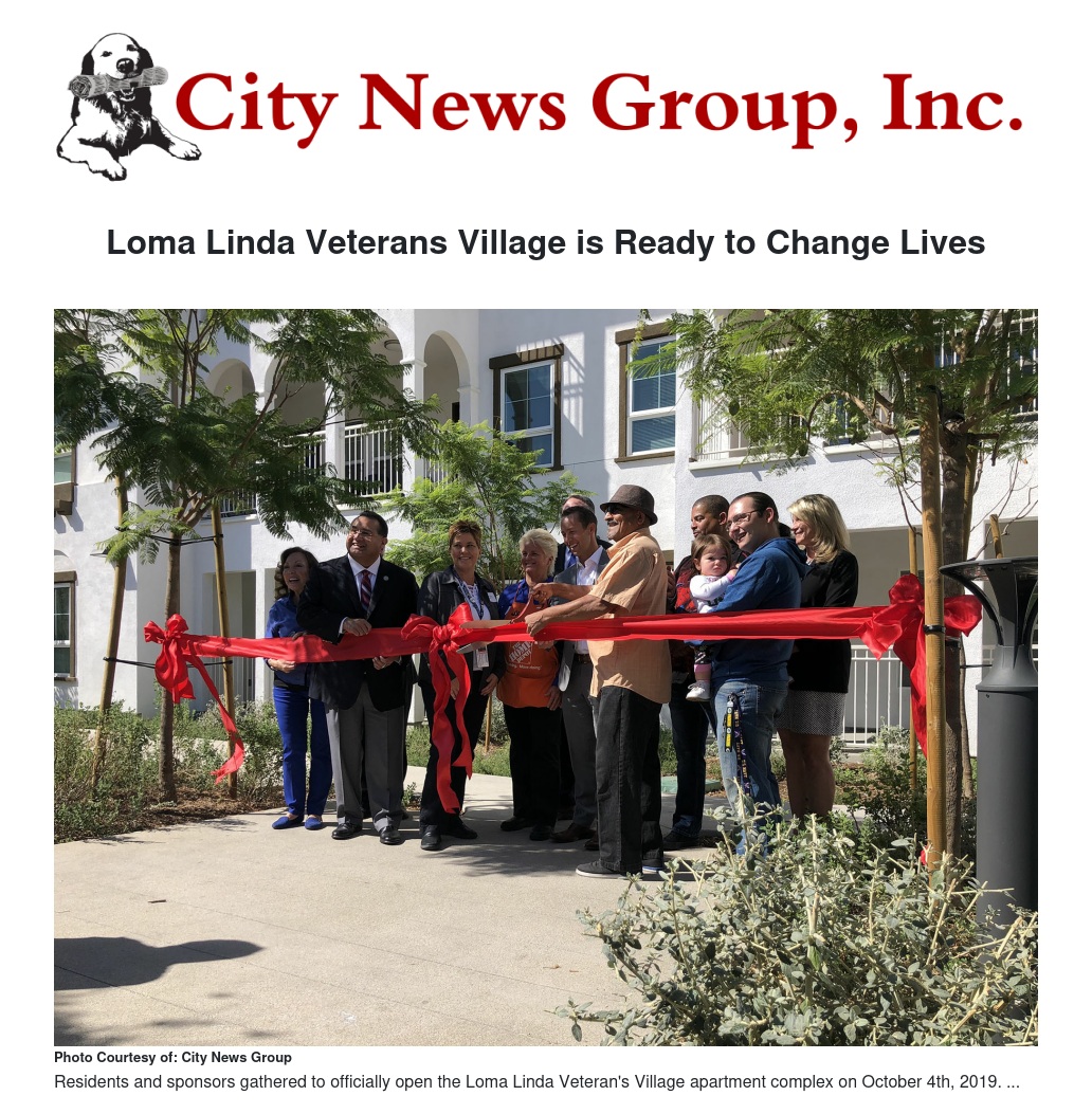 On October 4, 2019, Meta Housing Corporation and sponsors gathered to officially open the Loma Linda Veteran’s Village. The village is an 87-unit apartment community available to veterans and their families who are low-income residents.