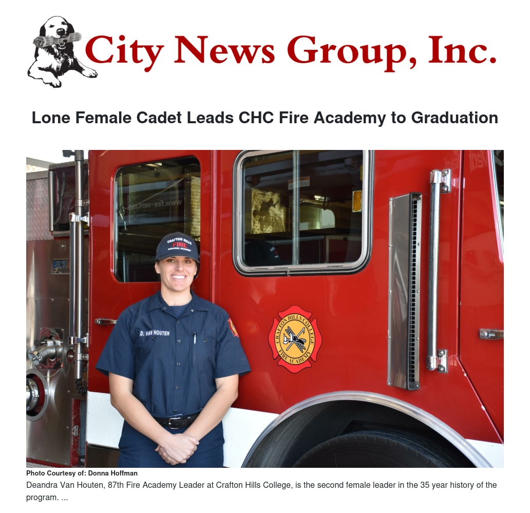 Hard pressed to find anything difficult about the 15-week intensive Fire Academy at Crafton Hills College, Deandra Van Houten is clearly meant to be a leader. In fact, she was selected to lead the 87th Fire Academy class by her fellow cadets, all of who are fellows by the way. Van Houten is only the second female academy leader in the 35 year history of the program. The cadets graduated on Friday, December 15.