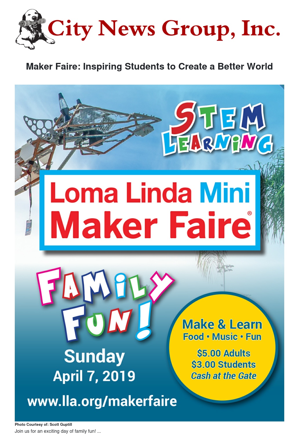 The 2019 Loma Linda Mini Maker Faire will be a family-friendly hands-on learning event. Admission is $5.00 adults and $3.00 students.