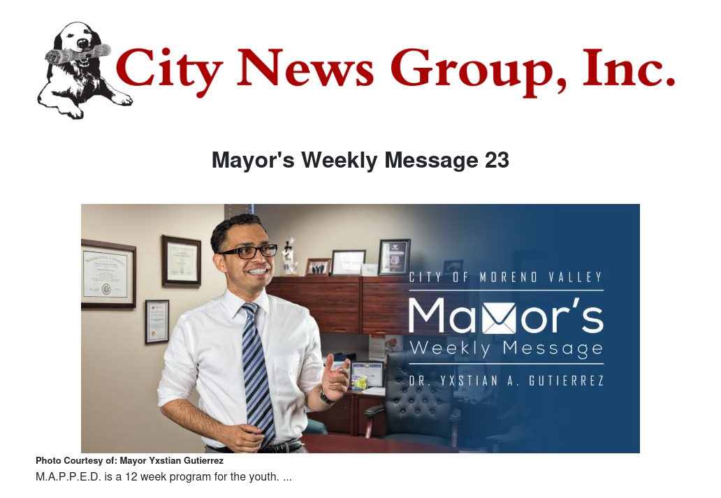 Dear Moreno Valley Residents: