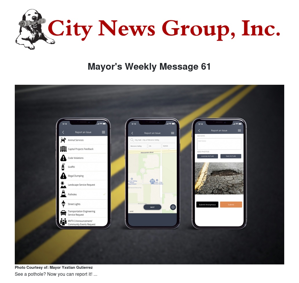 I look forward to seeing exciting results from this new mobile feature as we continue our mission to maintain Moreno Valley's roads.
