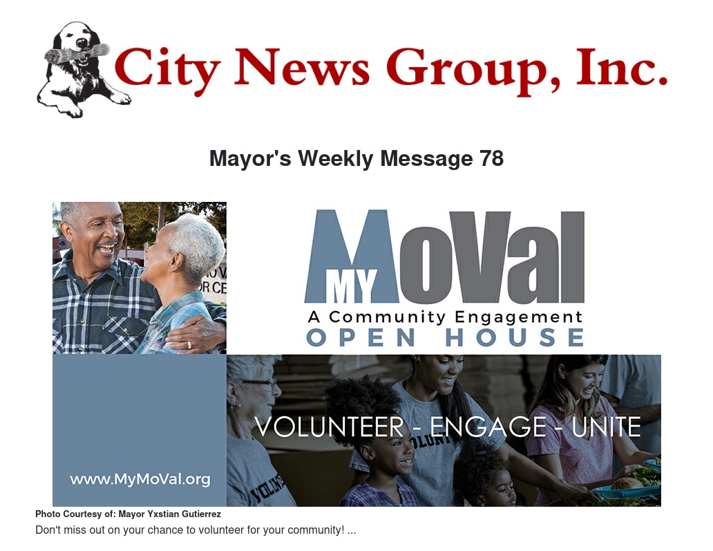 And if you’d like to find out more about volunteering, please attend the My MoVal Summit on Thursday, July 18, from 5-7 p.m. at the Conference & Recreation Center. You’ll get inspiration from others who volunteer and are making a real, positive difference in our community – just like you can! See you there!