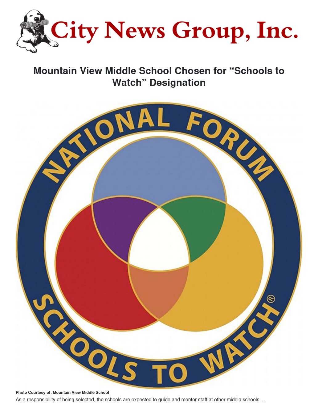 “Middle school is an important time for adolescents, and I am proud to see the hard work of Mountain View Middle School’s teachers, administrators and Principal Jon Black be recognized for meeting the challenge of helping our students be successful,” said Superintendent Dr. Martinrex Kedziora.