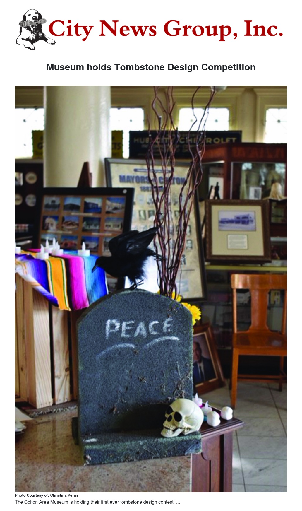 Residents who want to participate in the contest can bring their completed tombstone displays to the Colton Area Museum at 380 North La Cadena Drive during regular hours Wednesdays and Fridays from 1-4 pm and Saturdays from 11-2 pm beginning now with their completed submission form and fee.