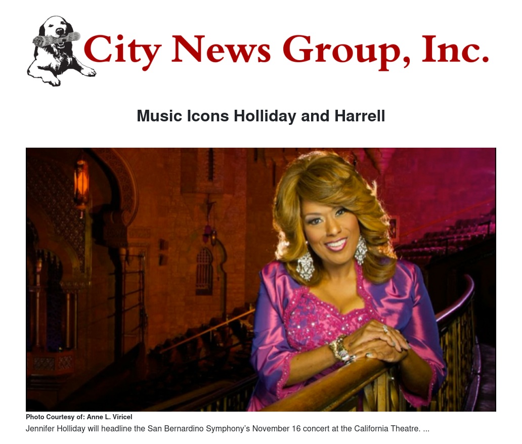“November’s concert reaches into the heart of nearly every family in the Inland Empire,” added Maestro Parnther. “Jennifer Holliday and Lynn Harrell are two world famous and beloved musical icons that bookend a concert filled with hope and beauty. We can’t wait to perform for our community!”