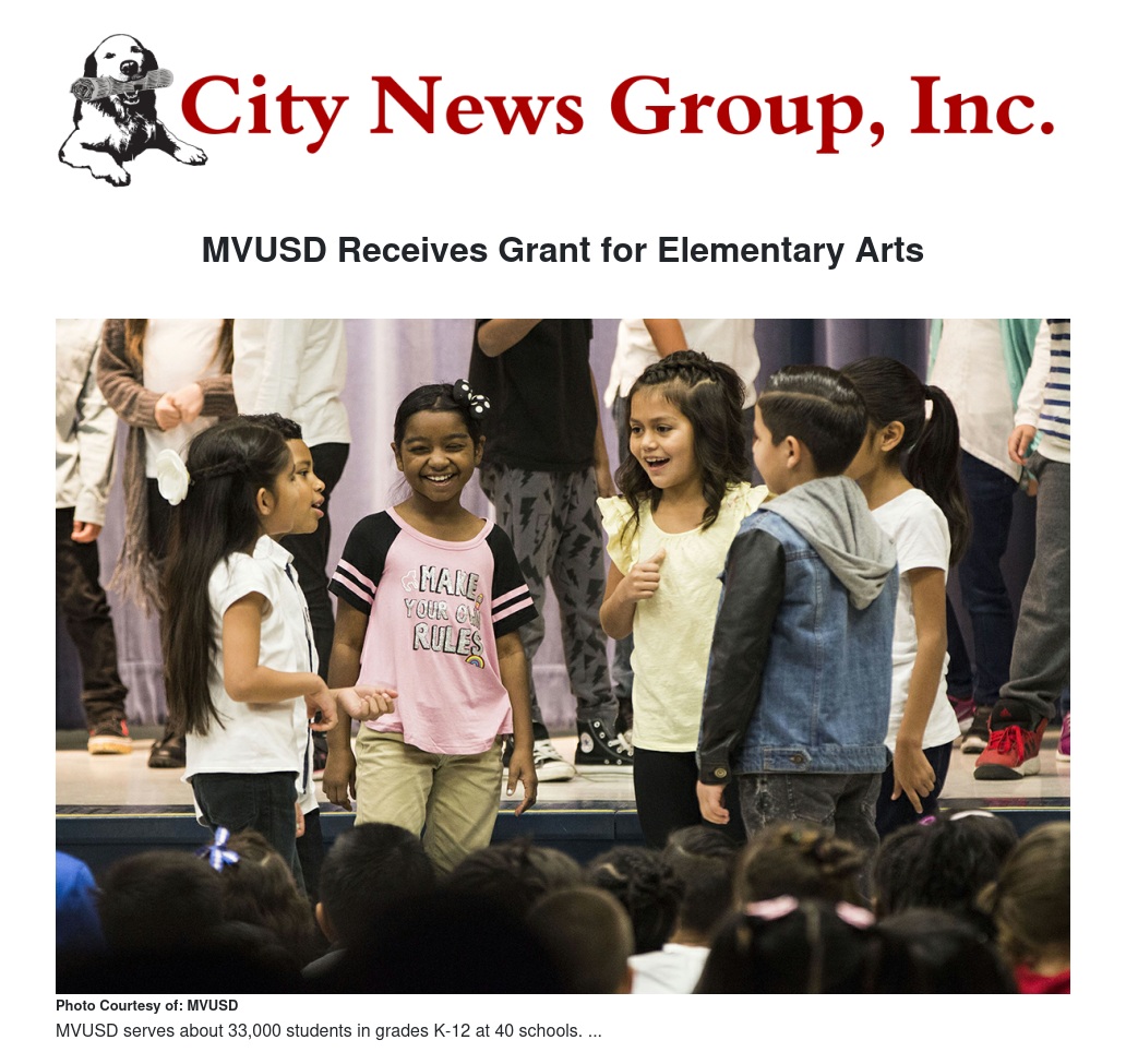 The Moreno Valley Unified School District (MVUSD) was awarded approximately $700,000 from the California Department of Education Student Support and Academic Enrichment (SSAE) grants. MVUSD is one of 53 districts in California to be awarded a grant under the SSAE. The grant will support arts education for elementary students in the district.