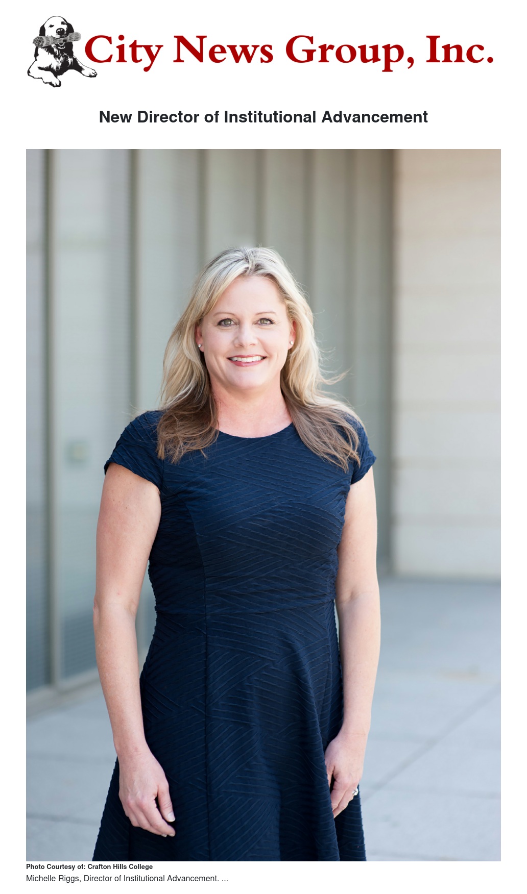 “Over the past five years, Michelle has shepherded the Crafton Hills College Foundation to substantial success, and her leadership helped increase the foundation’s revenue by over 400 percent since 2013,” Horan said.