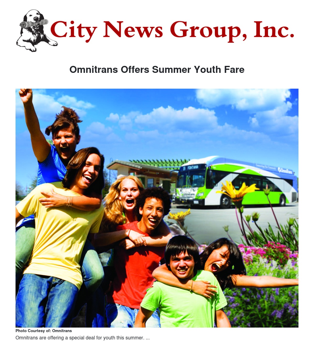 Getting around town will be a little cheaper for area youth this summer, thanks to a discounted fare on Omnitrans buses. Riders 18 and under will pay just $1 per trip June 1 through July 31.
