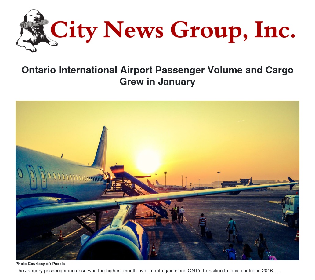 Ontario International Airport Passenger Volume and Cargo Grew in January