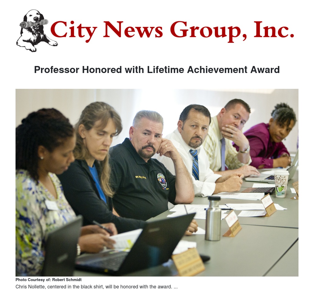 “I am honored and humbled to be recognized on a national level for my contributions to EMS/fire and adult education,” Nollette said. “There have only been nine recipients of the Lifetime Achievement Award, and while I believe that there are other men and women who are more deserving, I am proud to accept this on behalf of all those who have and continue to make a difference in the teaching of emergency medicine.