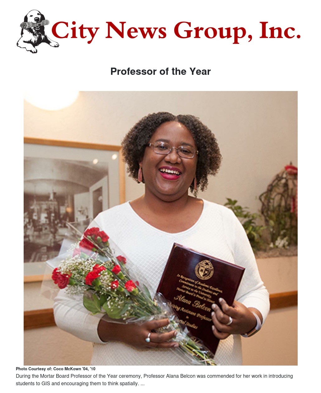 The University of Redlands Mortar Board Honor Society has announced that Alana Belcon, who teaches spatial studies in the College of Arts and Sciences, has been named Professor of the Year.