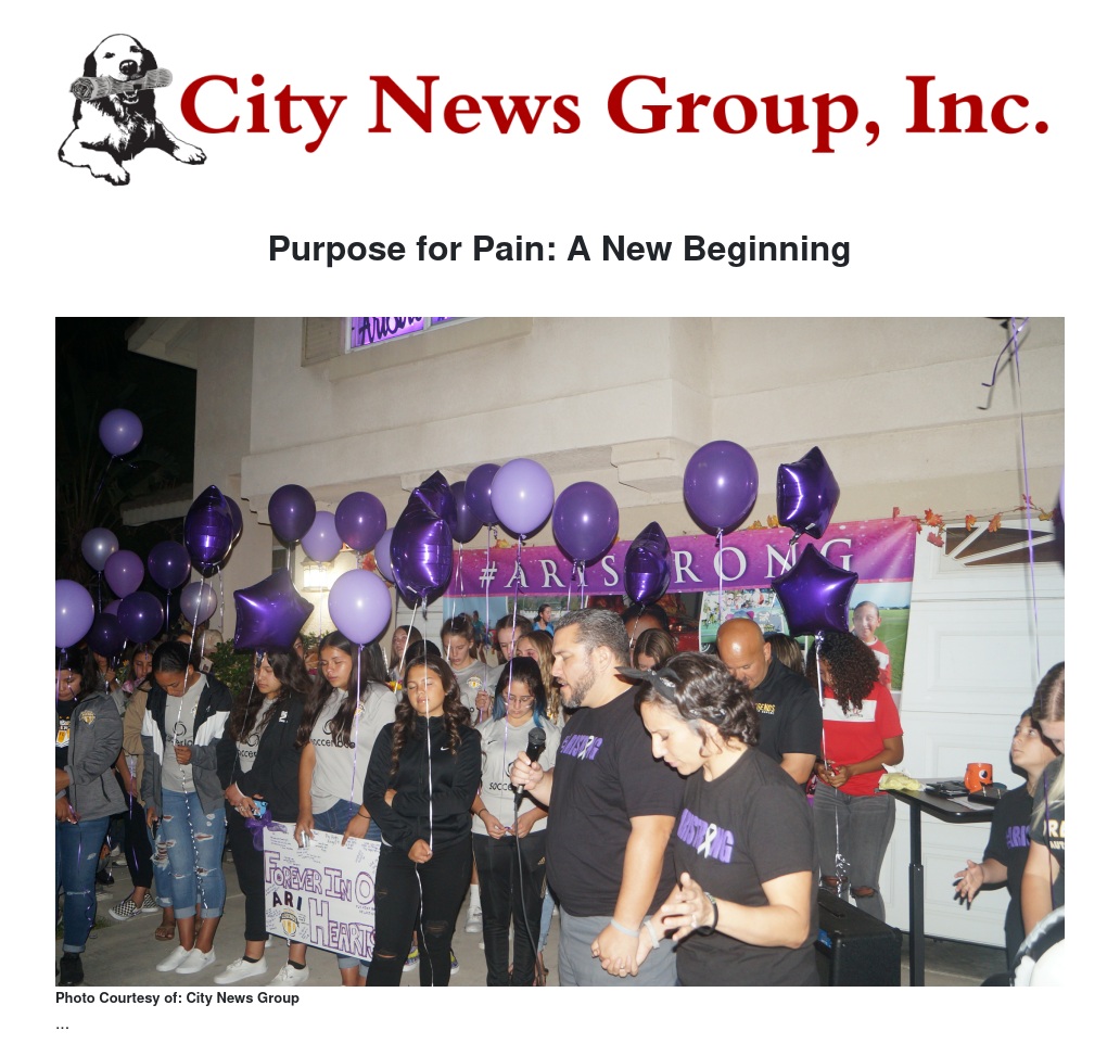 At a time when most parents would be falling apart, the Villalobos family has shown tremendous strength and dignity and an overwhelming sense of hope. City News Group had the privilege to follow Ari’s plight from the very beginning and was invited to a prayer vigil and balloon release recently. Hundreds of Ari’s family, church and community members, and fellow athletes gathered in front of her home Wednesday, October 2nd in a show of love and support. The vigil was organized by her coach and teammates of Legends, in order to honor a much loved and gifted young woman. The event was bathed in prayer and worship and an unexplainable peace was in the atmosphere. Ari’s parents Nikki and Chris spoke about their daughter and her vision for their future, “She was so selfless and giving that she wanted her brain and spine donated for research so that other parents don’t have to go through what Chris and I are experiencing,” explained Nikki. Ari donated almost every part of her body that she was able to so that others could live and have opportunities. She was always a giving person even after she went home to be with the Lord. One of her requests was that through this battle people would not feel sorry for her, but would come to the saving knowledge of Jesus. The first part of that was fulfilled on Wednesday evening in front the very home where she had been trained up in the things of Christ.