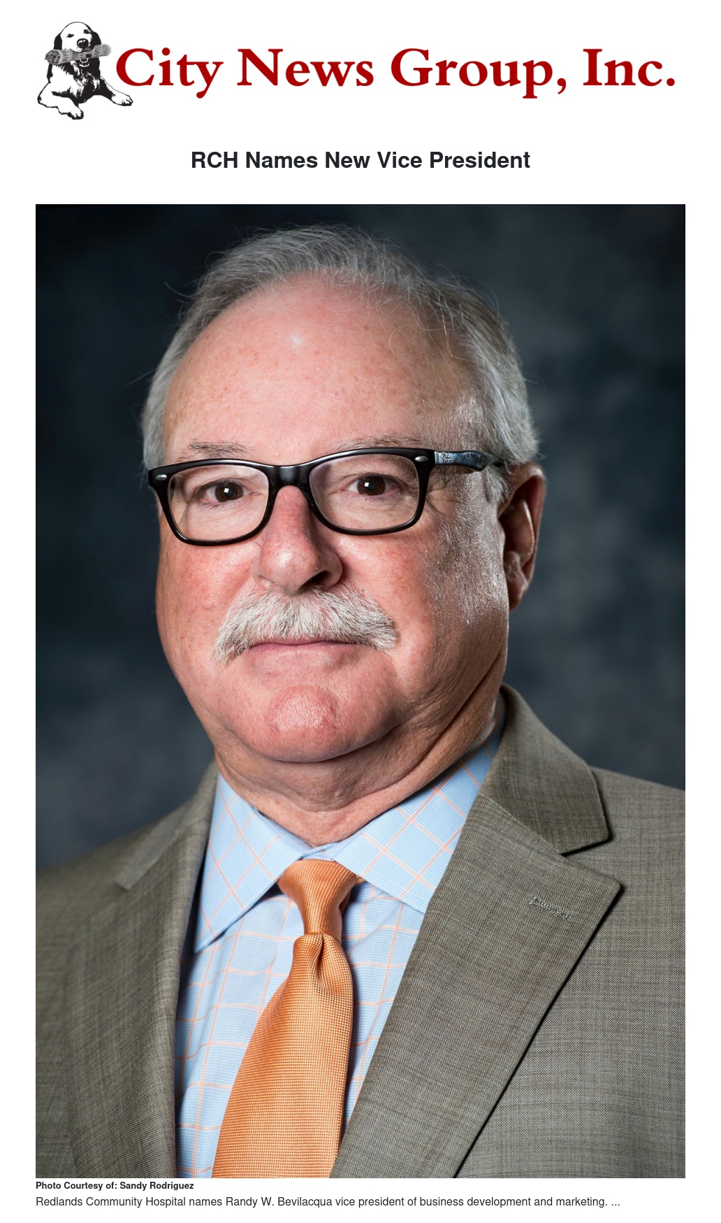 Redlands Community Hospital is pleased to announce the appointment of Randy Bevilacqua as Vice President of Business Development and Marketing.