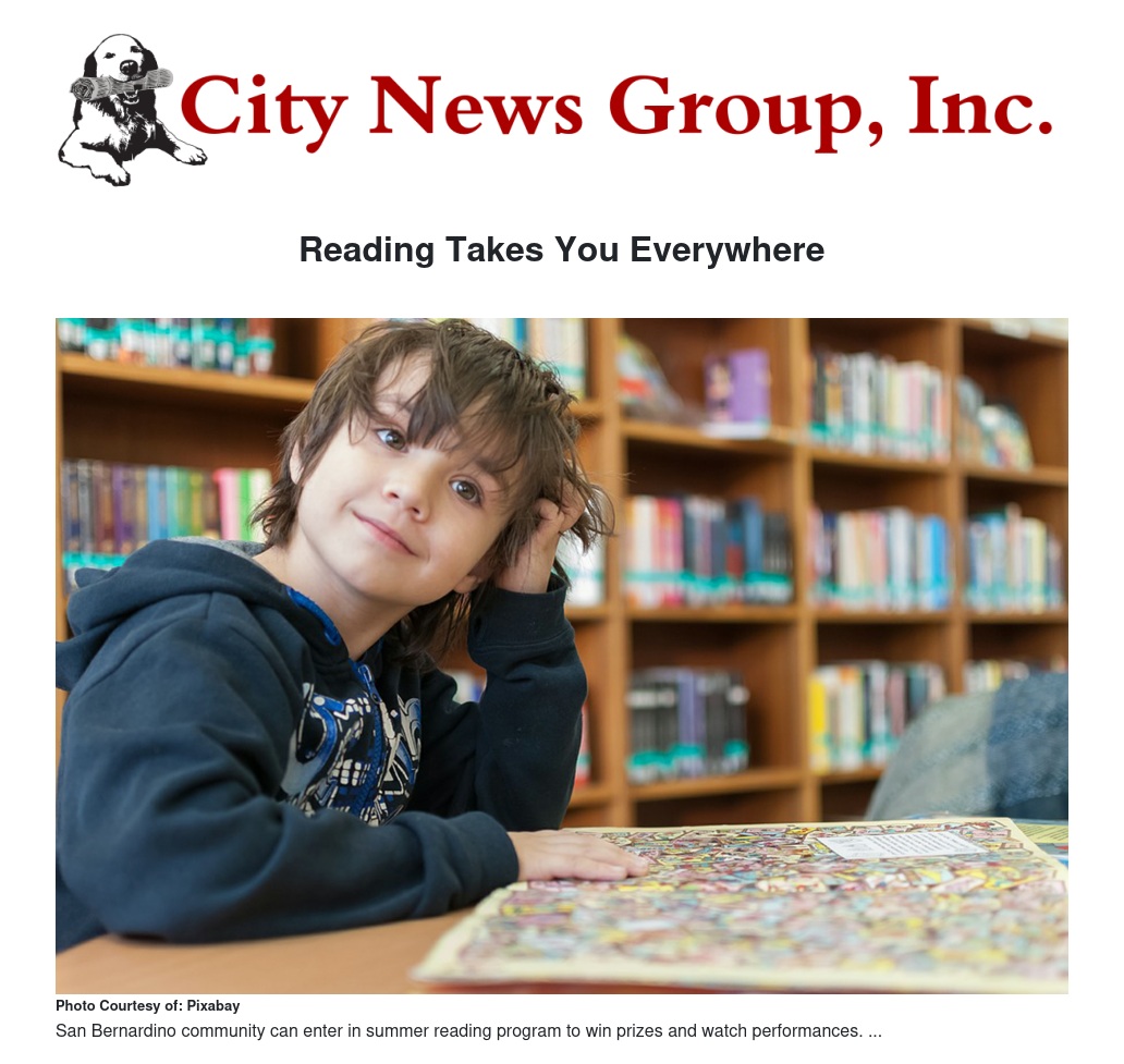 The San Bernardino Public Library will hold their annual summer reading program from June 2 through July 28, 2018. This year’s summer reading theme is “Reading Takes You Everywhere”. Children, teens, and adults are all able to participate to win prizes.