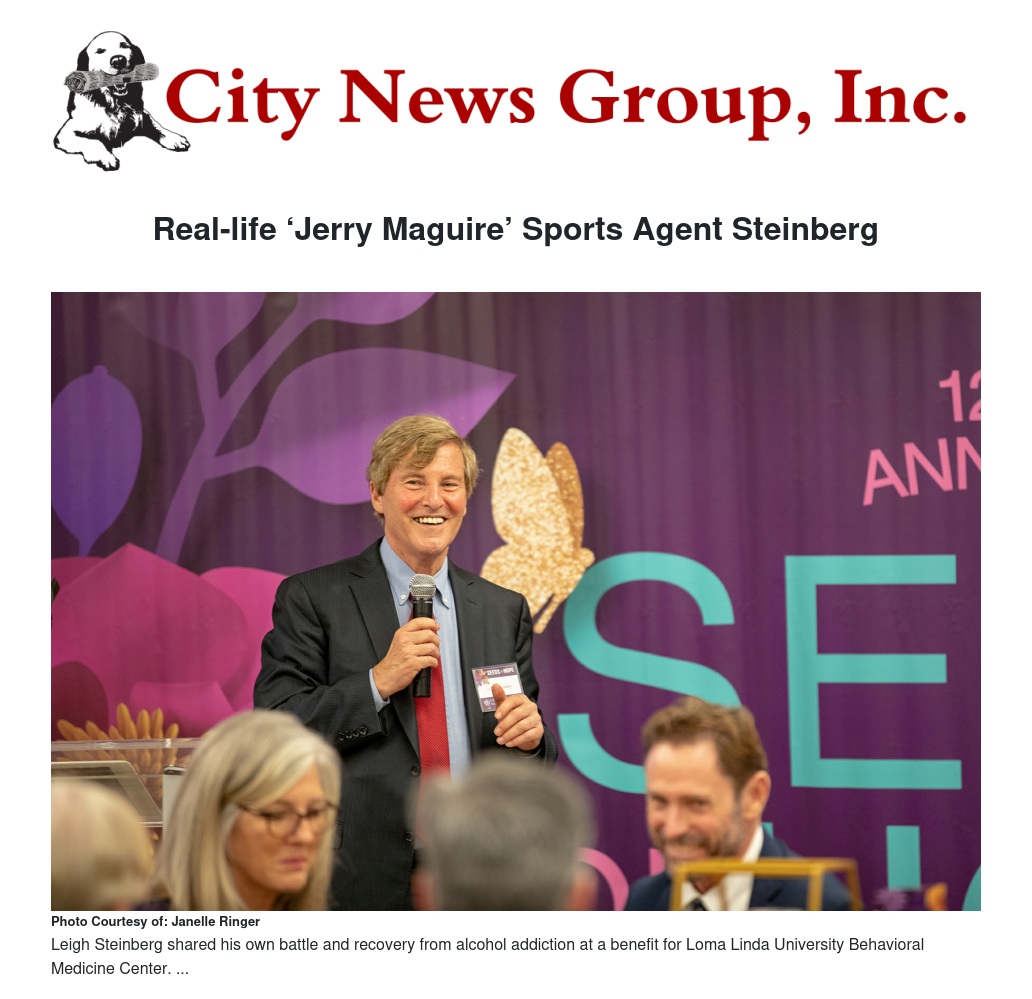 Leigh Steinberg, the sports super-agent and inspiration for the Oscar-winning film Jerry Maguire, shared his own battle and recovery from alcohol addiction while praising mental health providers and supporters at a benefit for Loma Linda University Behavioral Medicine Center.