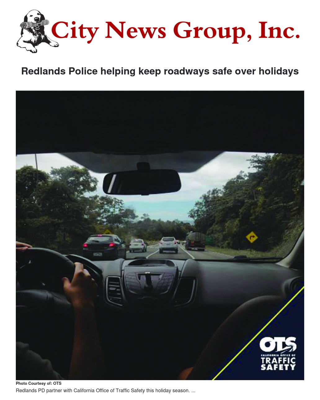 In addition, the Redlands Police Department will hold a DUI checkpoint beginning at 6:30 p.m. Saturday, Dec. 22, through 1 a.m. Sunday. The location of the checkpoint will be on Tennessee Street near the intersection of Park Avenue. Officers will be looking for signs of alcohol and/or drug impairment, as well as checking drivers for proper licensing.