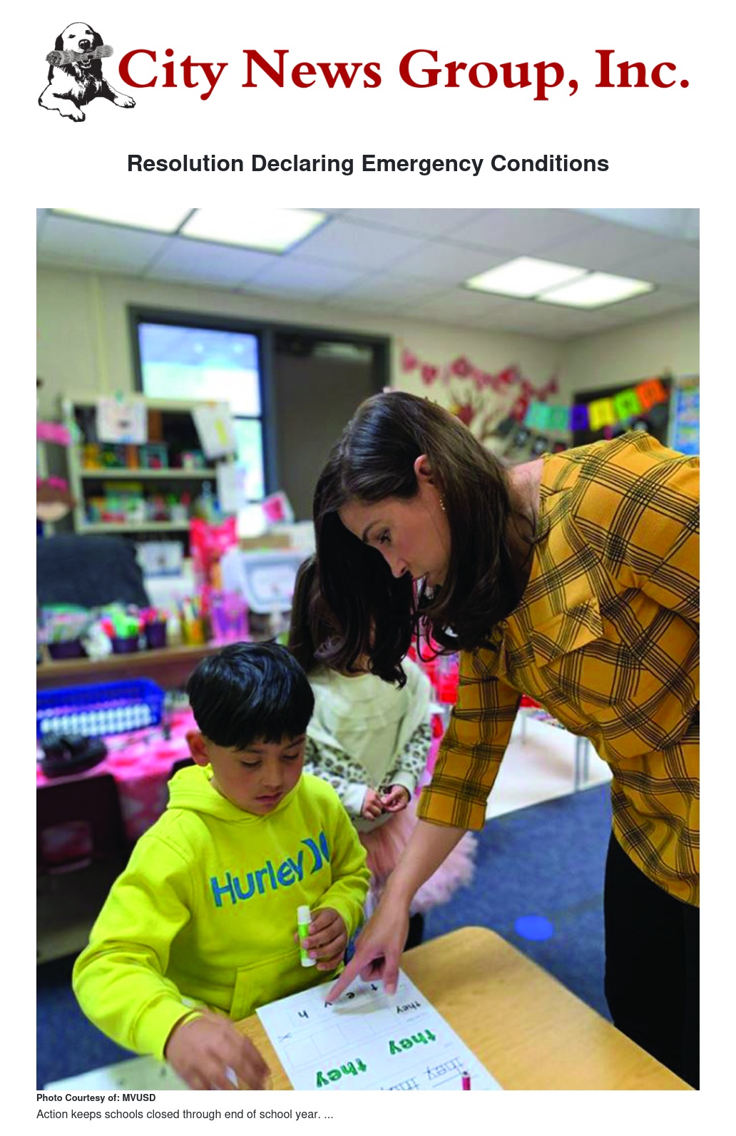 Although the order closes schools through June 19, MVUSD’s last day is scheduled for Friday, June 12.