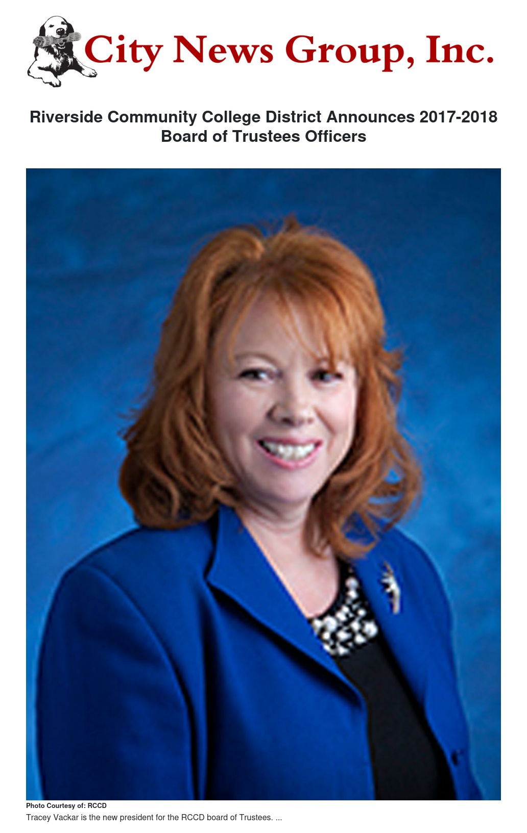 The Riverside Community College District Board of Trustees announced new officers for 2017-18. For the first time in four years, the Board has a new president.