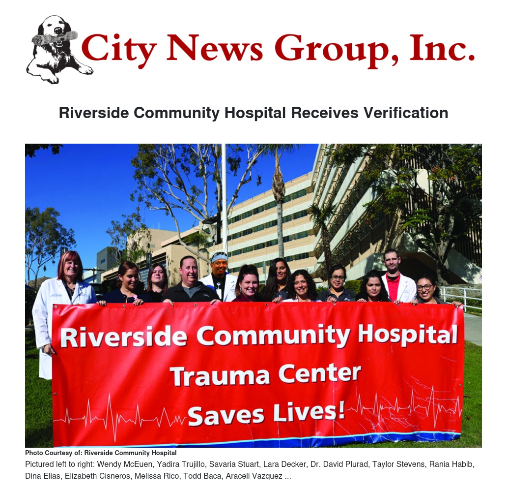 “As one of the leading trauma centers in the state of California, this achievement is another demonstration of the level of commitment that Riverside Community Hospital’s Trauma Center provides,” says Riverside Community Hospital’s President and CEO Patrick Brilliant. “I am extremely proud of all of our physicians and staff who are a part of our trauma team who work tirelessly every day to save lives and provide a higher level of care to every patient who is in need of emergent medical care.”