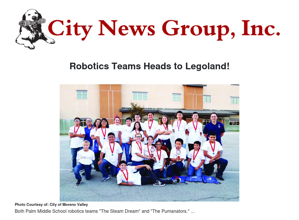 "Legoland, here we go!" said School Board Member Darrell Peeden. "We are very proud of the students who dedicated time and energy into this competition. It definitely paid off and we are excited that they are representing Moreno Valley in the next competition at Legoland."