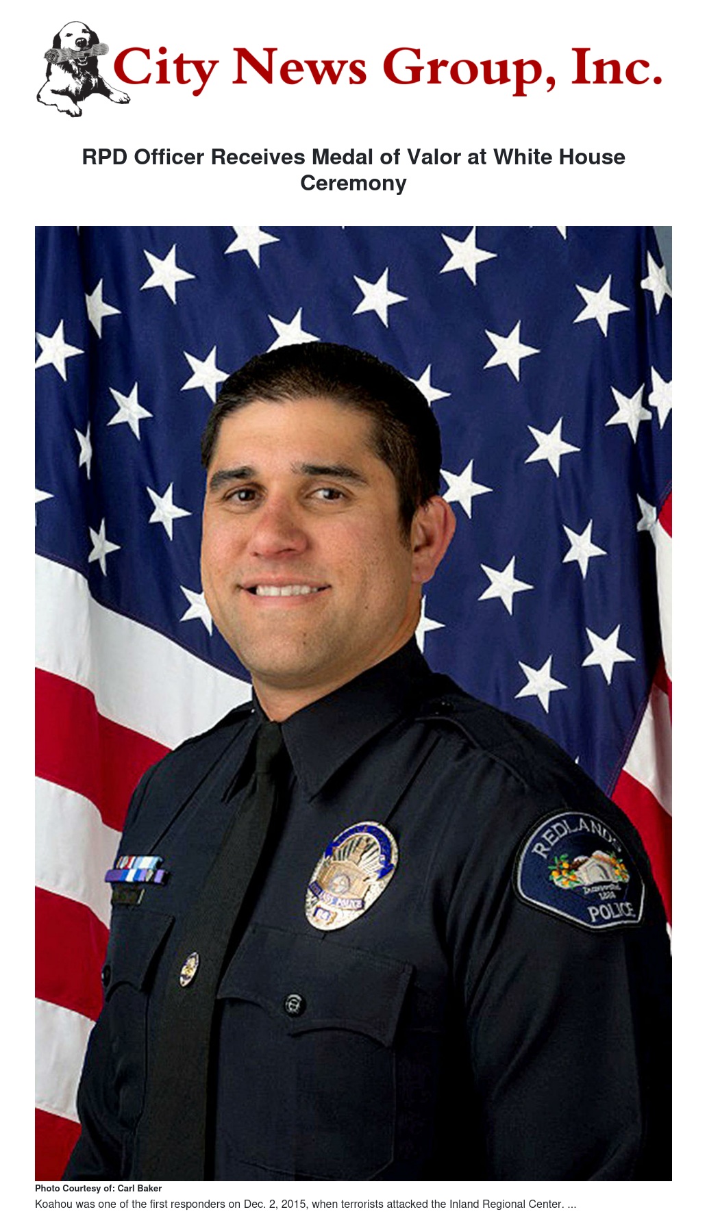 As an officer with the San Bernardino Police Department, Koahou was one of the first responders on Dec. 2, 2015, when terrorists attacked the Inland Regional Center, killing 14 people and injuring 22 others.