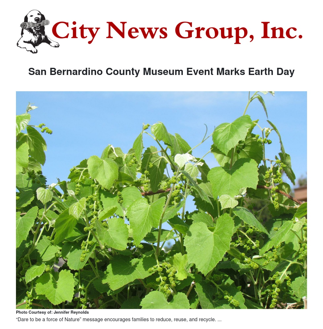 Earth Day and the San Bernardino County Museum’s other exciting events and programs reflect the effort by the Board of Supervisors to achieve the Countywide Vision by celebrating arts, culture, and education in the county, creating quality of life for residents and visitors.