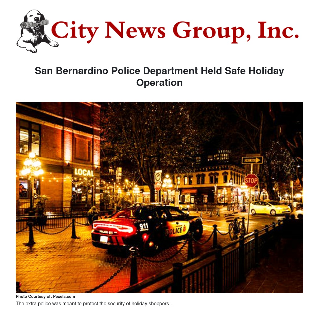During those extra patrols, SBPD officers were afforded the opportunity to interact with business owners, patrons and the citizens of our community. The San Bernardino Police Department strives to ensure the public safety during the holiday season by continuing with these directed patrols. Public safety in San Bernardino is always the primary focus of the San Bernardino Police Department.