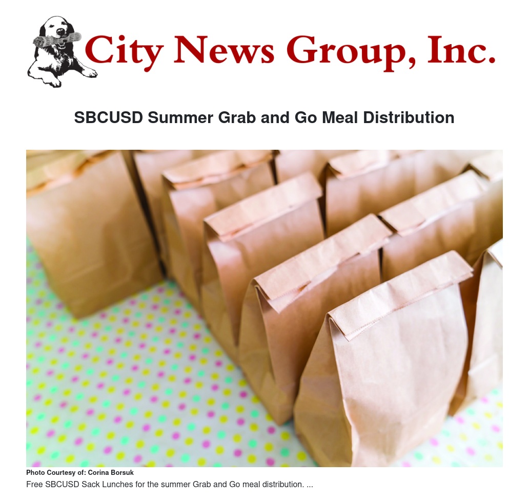 San Bernardino City Unified School District (SBCUSD) will continue to provide free grab and go meals to students at 11 locations from June 8 to July 29, 2020.