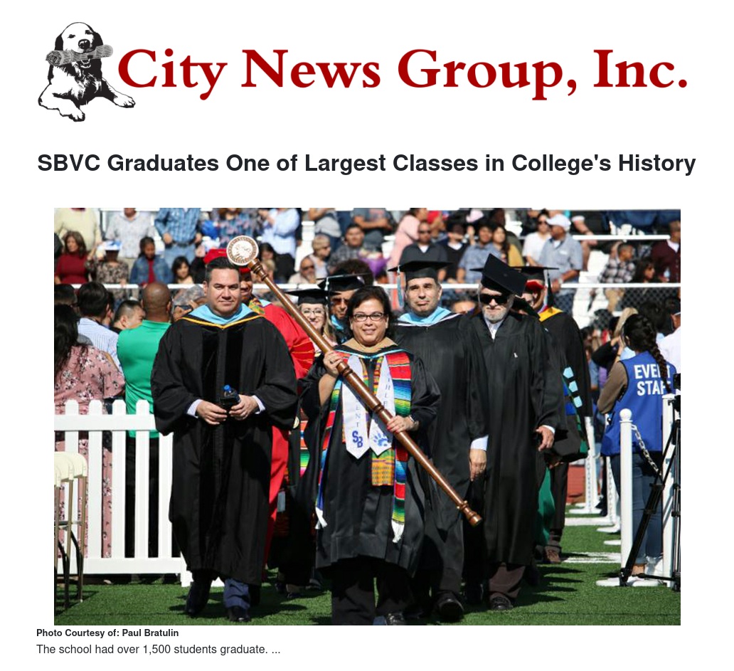 San Bernardino Valley College ushered in its newest class of graduating students and reflected on the many milestones that were achieved by the college's students, staff, and faculty in the past academic year.