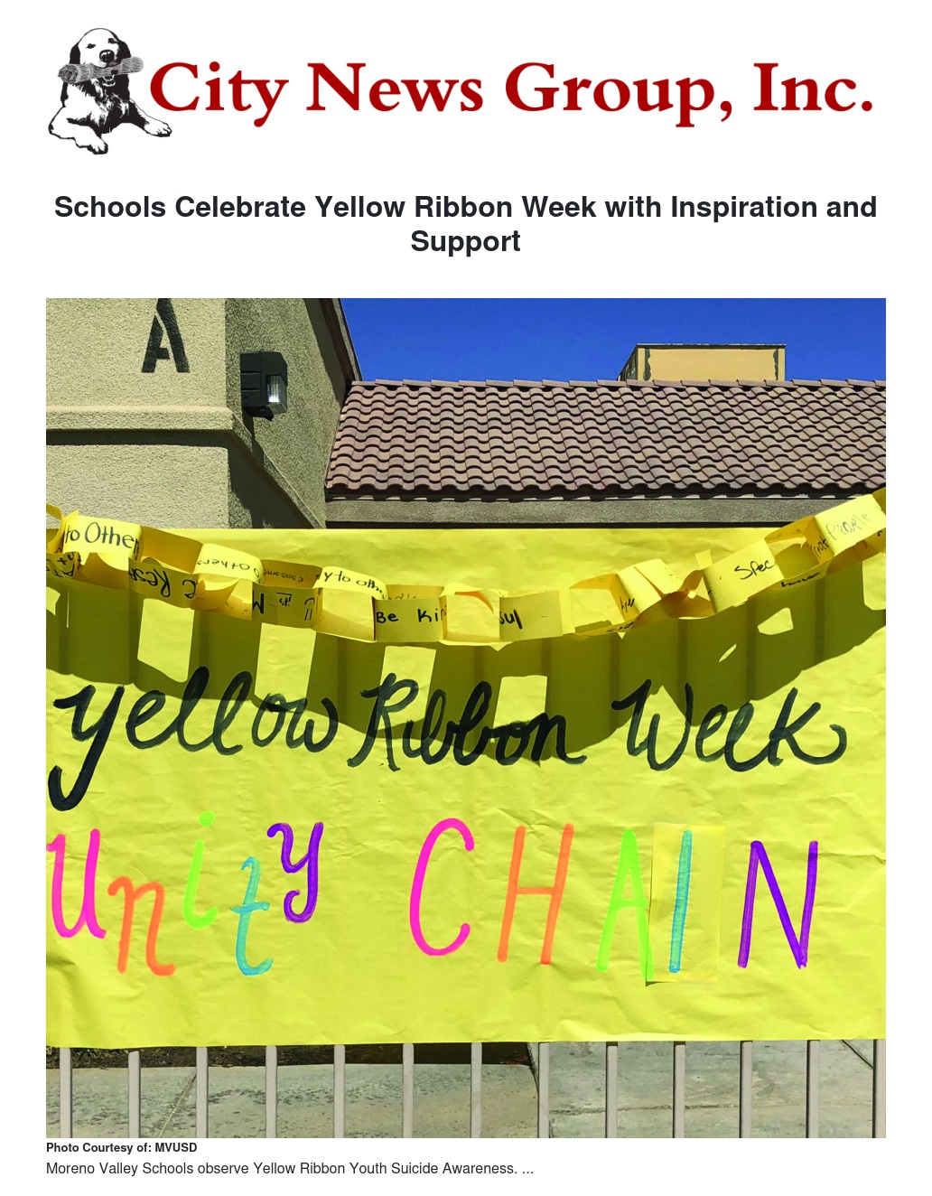 Schools across Moreno Valley Unified School District are observing Yellow Ribbon Youth Suicide Awareness and Prevention Week with a variety of approaches to ensure students feel welcome and supported by all.