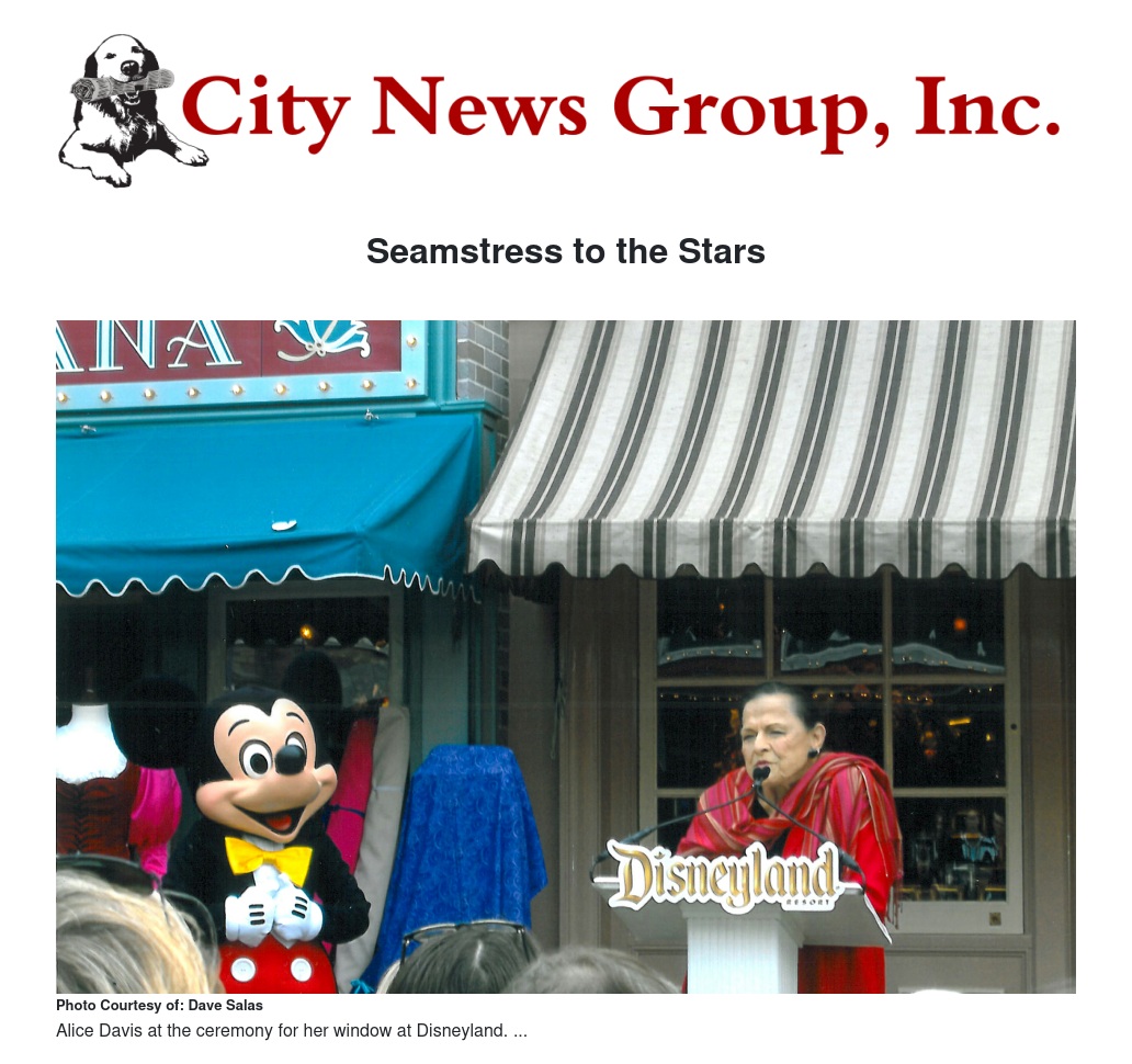 Alice’s dream came true when she was awarded with her own special window next to her husband on Main Street at Disneyland. These windows  have the names of individuals who were part of contributing their work in helping create Disneyland.  She invited Gaitan and Salas to be part of the ceremony, and when a quartet sang the song “ When You Wish Upon a Star,” for her,  her face just lit up with this huge smile.  It was a beautiful ceremony for her. Now every time the two men visit Disneyland , as they walk down Main Street they look up at her and Marc’s window and say “ Hi Marc, Hi Alice”, and when they leave Disneyland they say “ Bye Marc, Bye Alice."