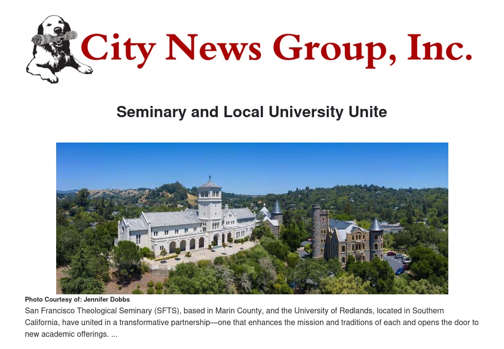 San Francisco Theological Seminary (SFTS), based in Marin County, and the University of Redlands, located in Southern California, have united in a transformative partnership—one that enhances the mission and traditions of each and opens the door to new academic offerings.