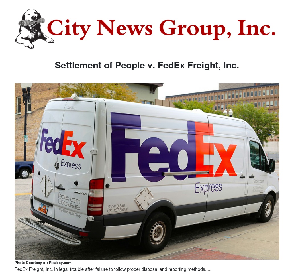 San Bernardino County District Attorney Jason Anderson announced a stipulated judgment against FedEx Freight, Inc., to resolve issues in an environmental case. In the judgment signed October 1, 2019, by Superior Court Judge Brian McCarville, FedEx agreed to pay $300,000 in civil penalties and comply with the Hazardous Waste Control Law (HWCL), the Hazardous Materials Release Response Plans and Inventory Law, and applicable Fish and Game law.