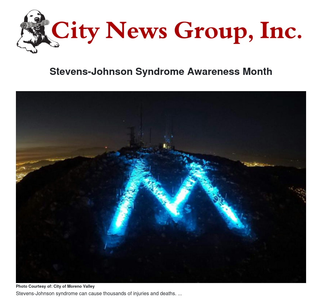 “People across the world will be wearing blue today in recognition of Stevens-Johnson syndrome," said Mayor Yxstian Gutierrez. "Moreno Valley is lighting the M blue in support of those who are affected by such a devastating syndrome."