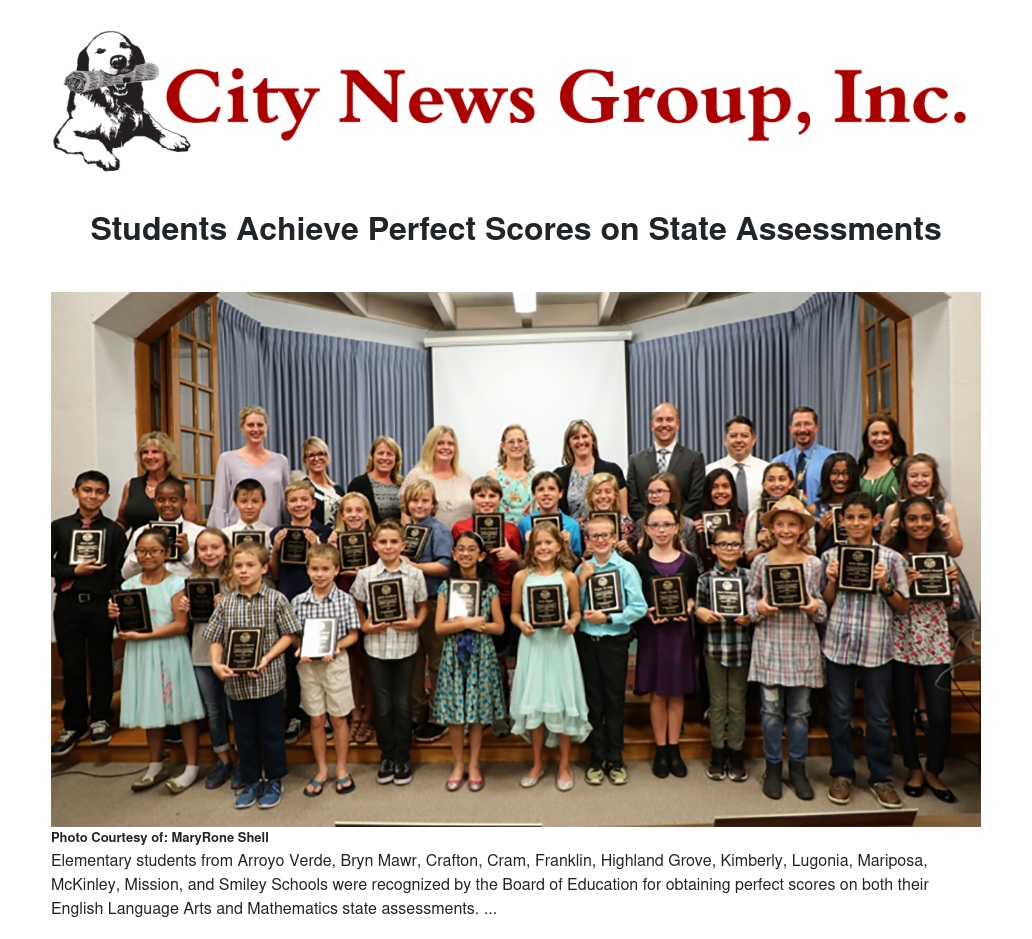 Achieving a perfect score on a challenging state assessment in a single subject area is a feat in and of itself, but 84 Redlands Unified School District (RUSD) students attained perfect scores on Redlands Unified School District students achieve Perfect-Perfect Scores on state assessments both the English Language Arts (ELA) and Mathematics tests according to the 2017-18 California Assessment of Student Performance and Progress (CAASPP) results.