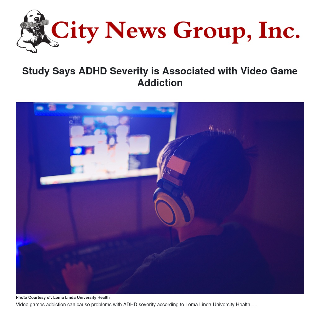 A study by Loma Linda University School of Behavioral Health researchers found that attention-deficit/hyperactivity disorder (ADHD) severity is associated with severity of video game addiction.