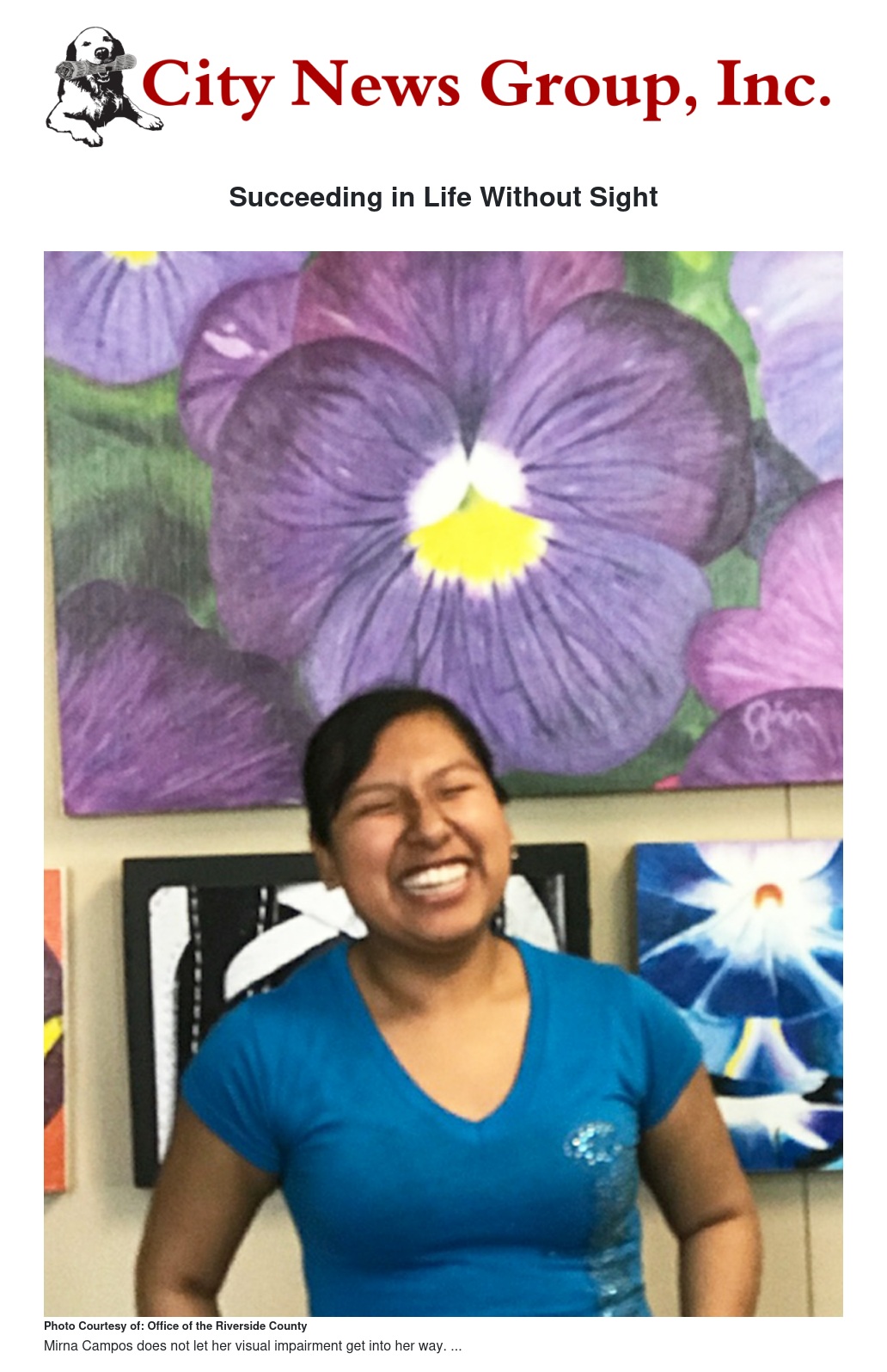 She was recently surprised with the news that she was selected to receive a scholarship from the California Council of the Blind’s Inland Empire Chapter.