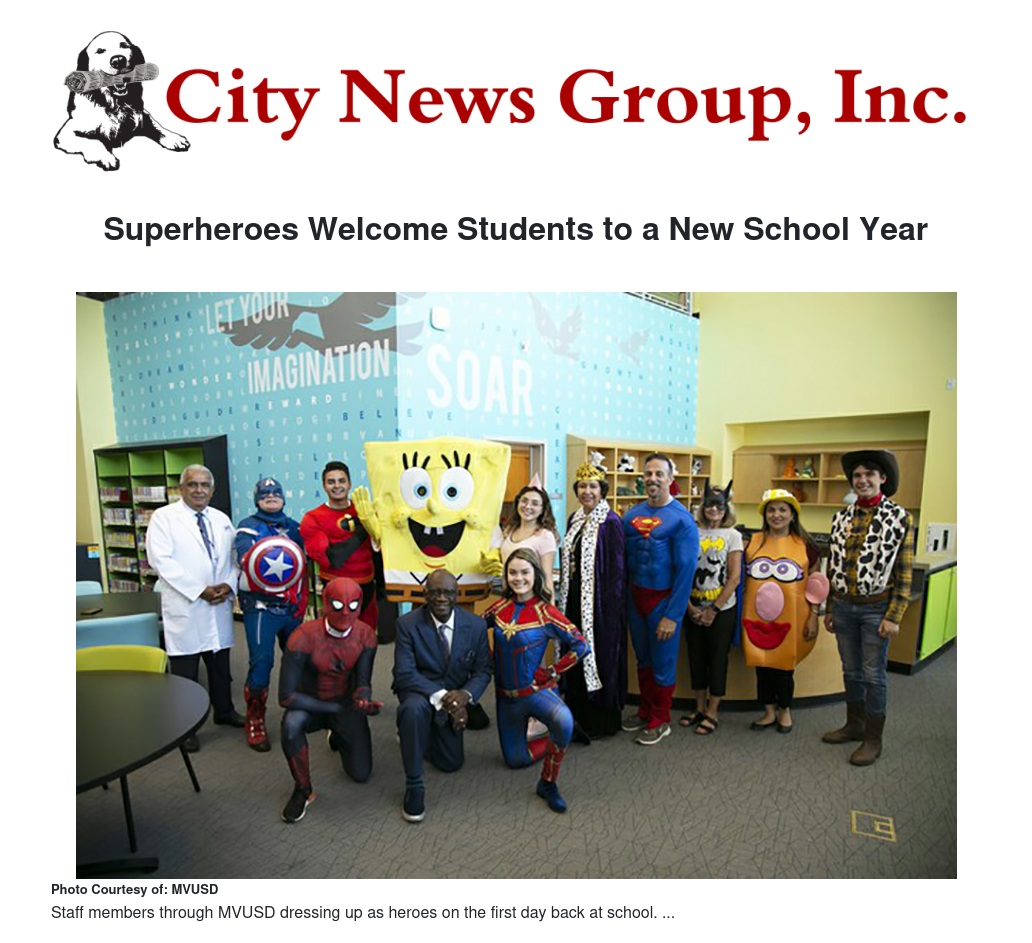 Each year, the Board of Education, superintendent, cabinet and district staff fan out across the district for the first day of school celebration. Students and parents were excited to be welcomed back to school by their favorite superhero visit on Wednesday, August 14!