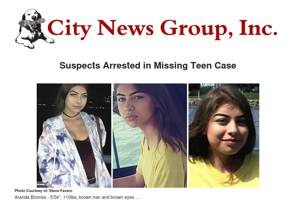 On January 14, 2019, officers from the Moreno Valley Police Department began their investigation into missing 16-year-old, Aranda Briones, who was last seen by friends and family on Sunday, January 13, 2019. The case was initially referred to Moreno Valley Investigators who began an exhaustive search for Aranda. In the days that followed, the Moreno Valley Police Department obtained the assistance of the Riverside County Sheriff’s Special Investigations Bureau and the FBI. Based on circumstances learned during the investigation, the Sheriff’s Central Homicide Unit assumed the case.