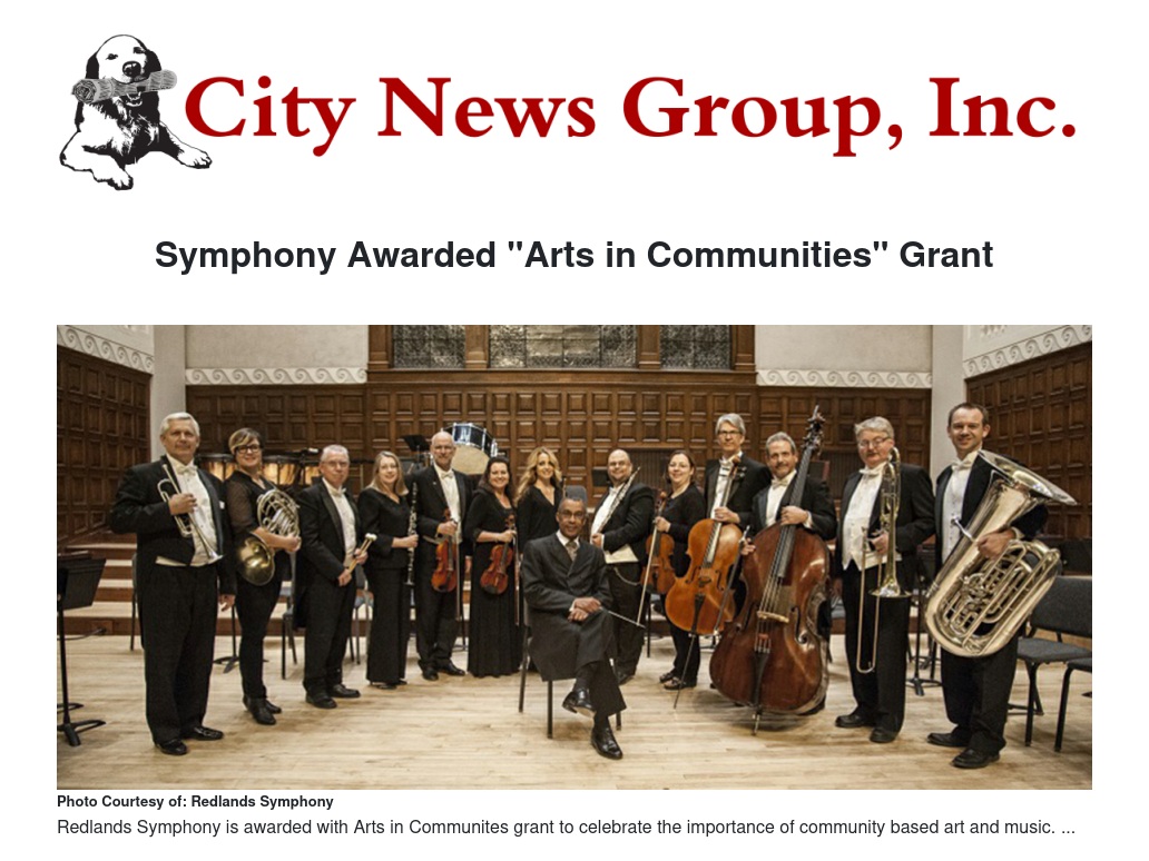 “Redlands Symphony is one of 96 grantees chosen for the Artists in Communities program. The award was featured as part of a larger announcement from the California Arts Council, with grant funds totaling a projected $24,508,541 for 2018-19, the highest investment in statewide arts programming since the 2000-01 fiscal year.