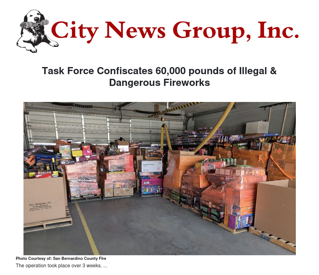 Investigators from San Bernardino County Fire, Colton and Rancho Cucamonga Fire Departments teamed up to stop dangerous and illegal fireworks from entering the county. Throughout the month of June, investigators targeted key entry points into the county, specifically I-15 from Nevada, conducting vehicle checks and searching out illegal fireworks.