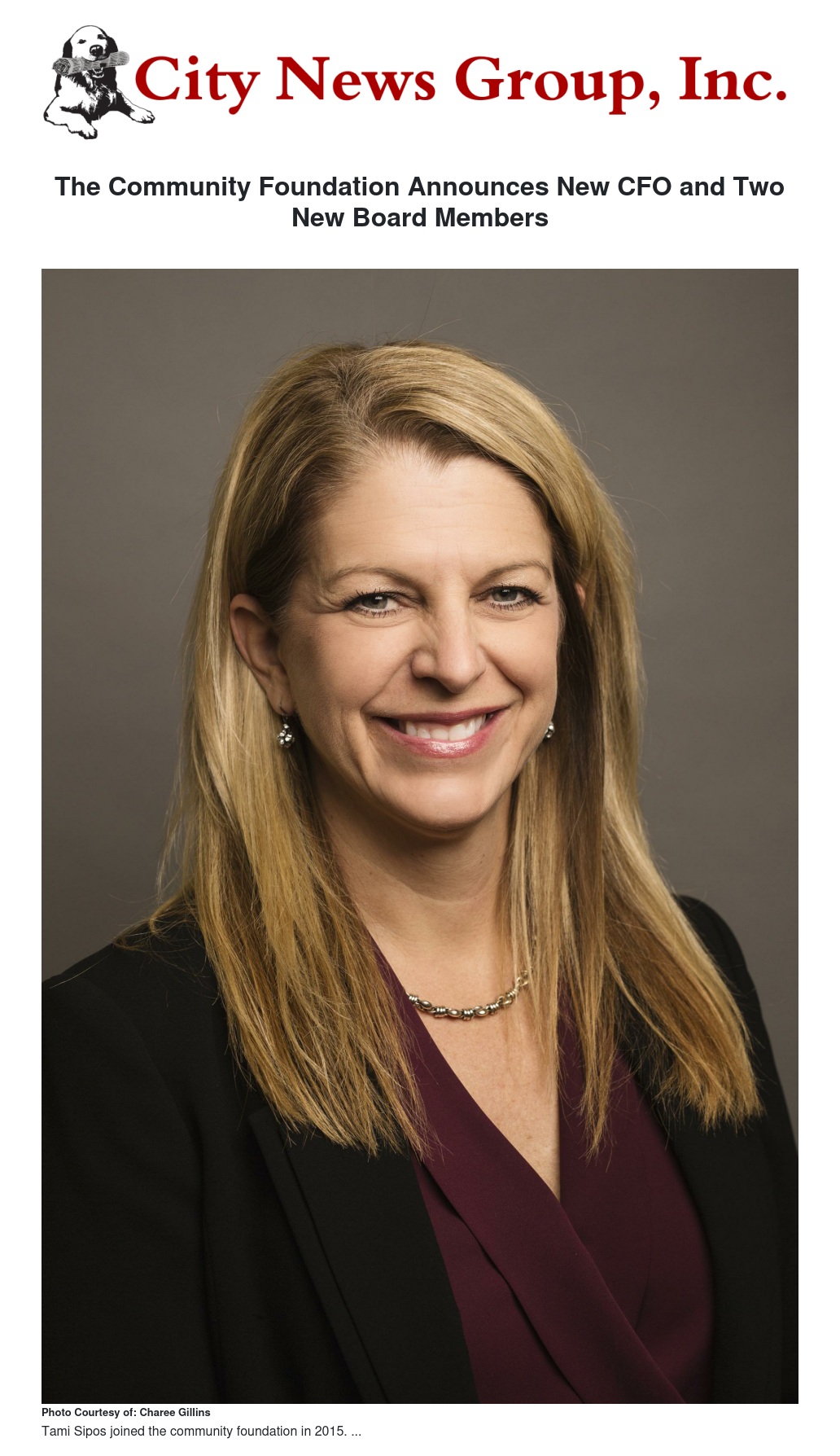 “We are very excited to have Ms. Sipos as our new Board Chief Financial Officer and to add two exceptional leaders to our Board,” said Paula Myles, Interim President and CEO of The Community Foundation. “Each new Board Member brings additional knowledge, skills and and experiences to the Foundation. They will help us continue to build a culture of philanthropy in the vast two-county region we serve.”