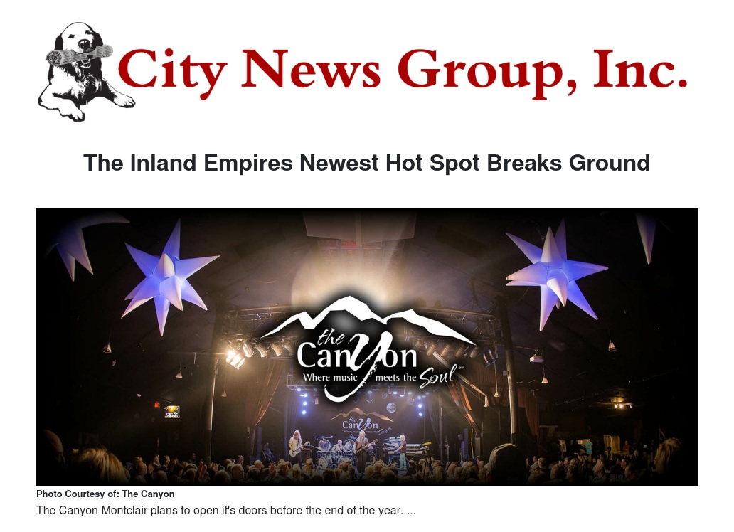 Residents of Montclair and surrounding areas are encouraged to visit: www.wheremusicmeetsthesoul.com, where, not only can they learn more about The Canyon, but will also have the opportunity to communicate directly to The Canyon management team with regard to the artists they would like to see up close and personal at the new location.