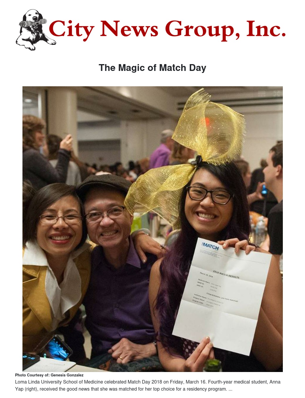 The day medical students dream about has finally arrived — Match Day. Eager fourth-year medical students at Loma Linda University (LLU) School of Medicine and across the country have just learned where they will be spending the next few years of their careers. This pivotal moment has been much anticipated for fourth-year medical student Anna Yap.