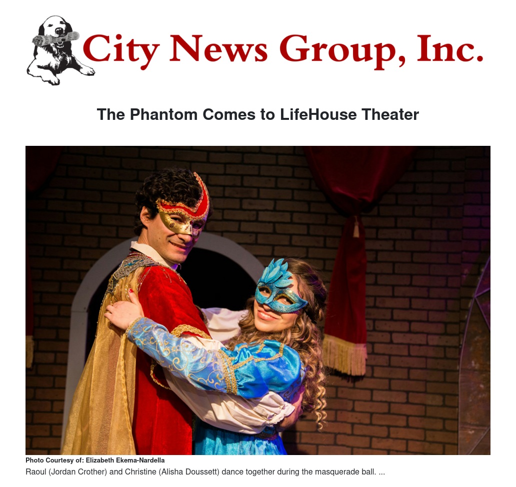 In addition to the regular run, LifeHouse Theater is presenting a special performance of “Phantom of the Opera” on Valentine’s Day, February 14.  This specially priced performance includes a pre-show refreshment period that features an interactive time with the cast, a rose for each woman in attendance, and a special dessert at intermission.  Ticket prices for this special are $40 each.
