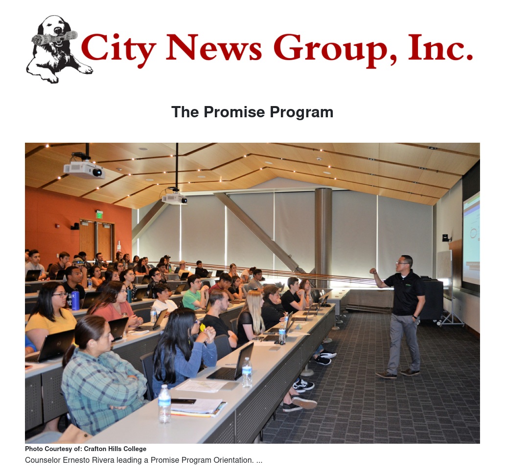 The San Bernardino Community College District is offering a “Free Promise Program” for new high school graduates who are starting college this fall at Crafton Hills College or San Bernardino Valley College. The program provides funding for full-time college students to earn an associate degree or get a career training certificate. Students are guaranteed two years of free tuition, free textbooks, free access to a laptop, cash for college expenses, priority registration, student support, and opportunities for paid work experience.